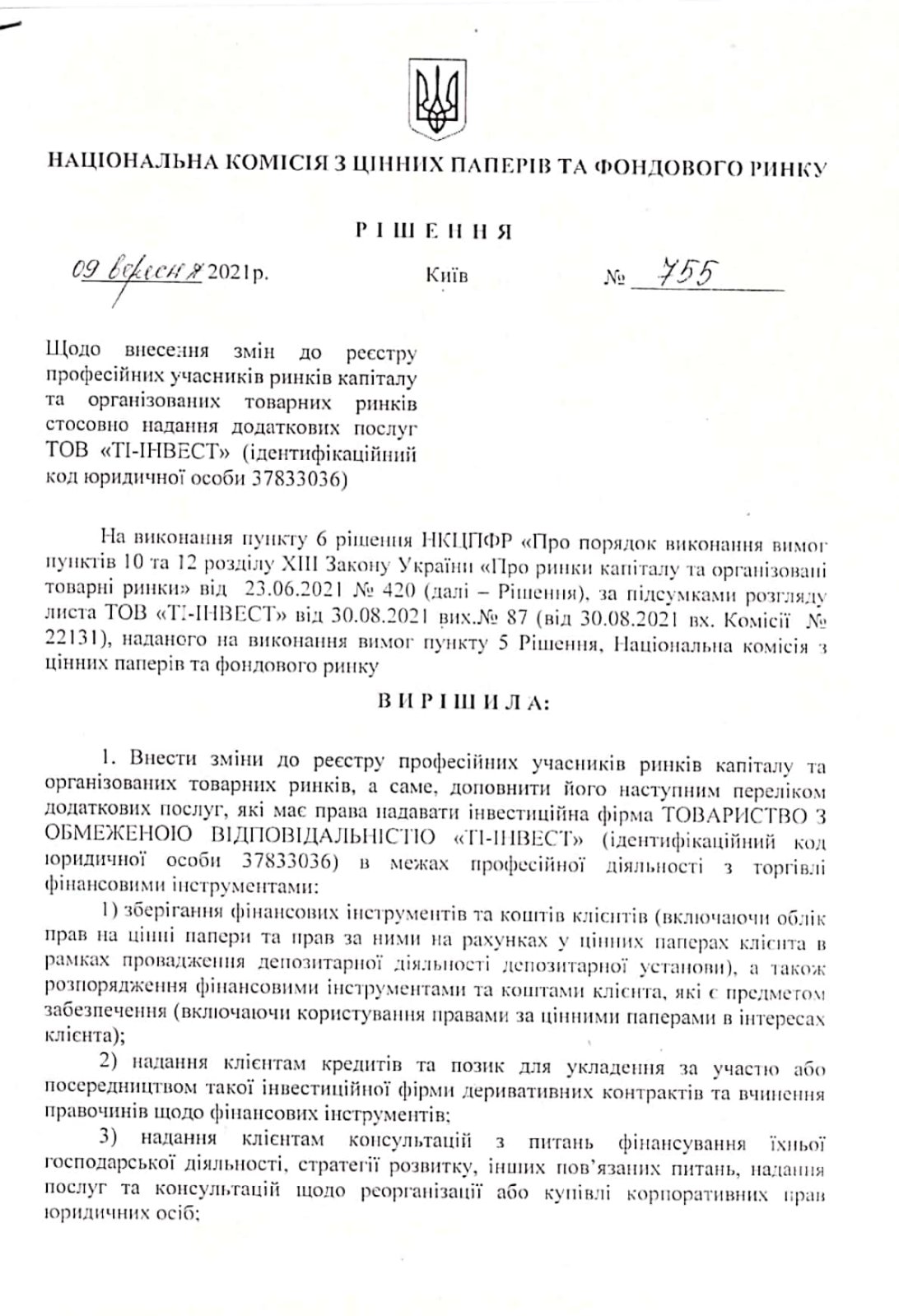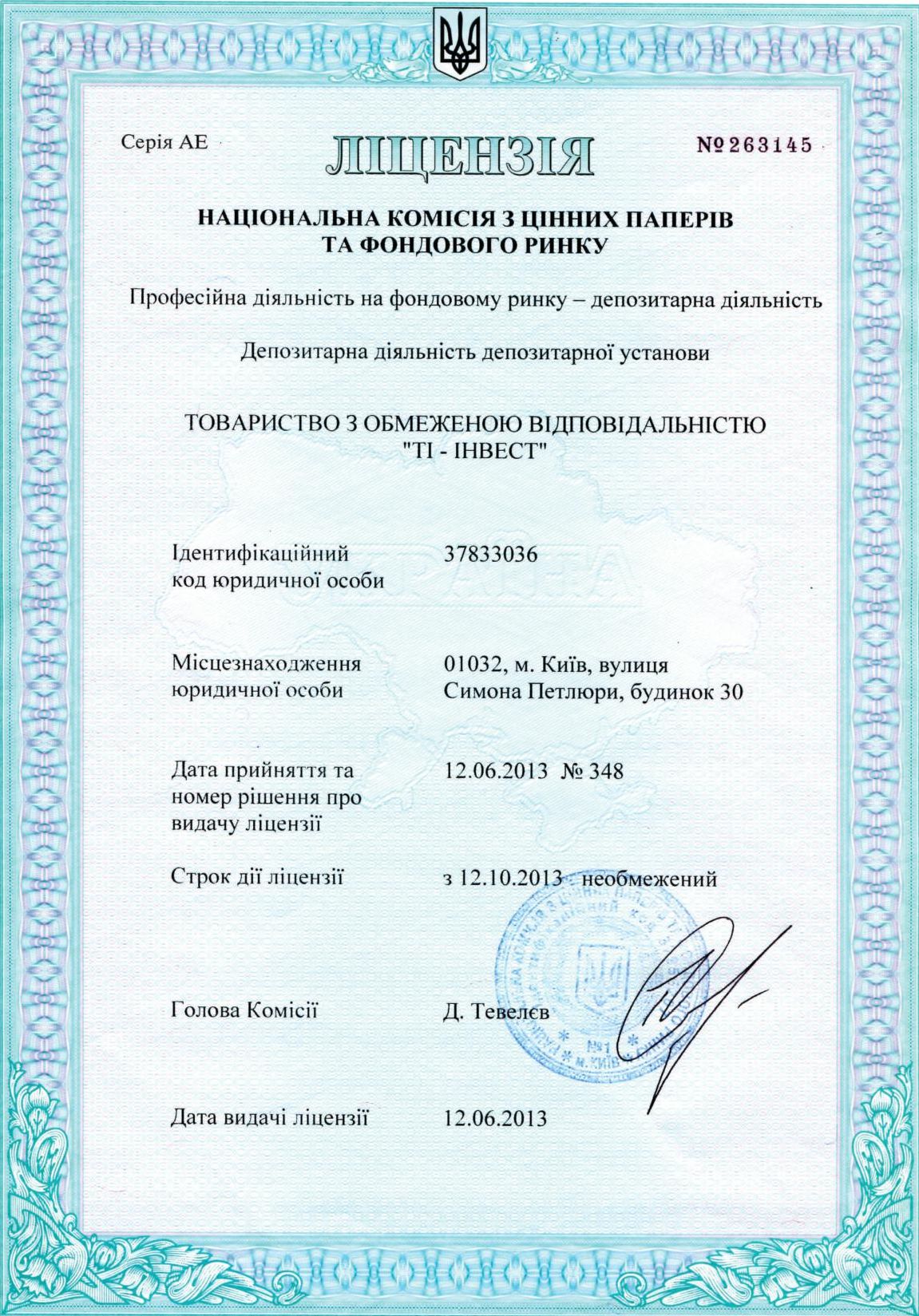 Товариство з обмеженою відповідальністю "ТІ-Інвест", код за ЄДРПОУ 37833036, з 2011 року є професійним учасником фондового ринку України та провадить свою діяльність, пропонуючи повний спектр депозитарних послуг та послуг інвестиційної фірми приватним та корпоративним клієнтам.