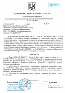 Компанія має наступні ліцензії на здійснення професійної діяльності на фондовому ринку України: